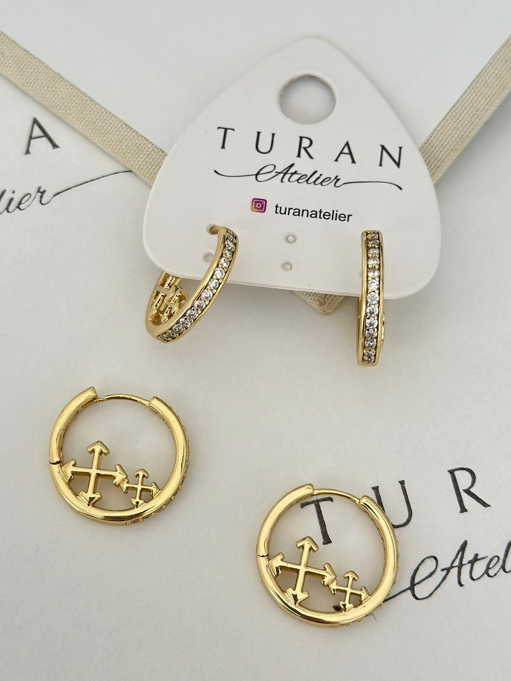 14 K Renk Taşlı Tasarım Gold Halka küpe