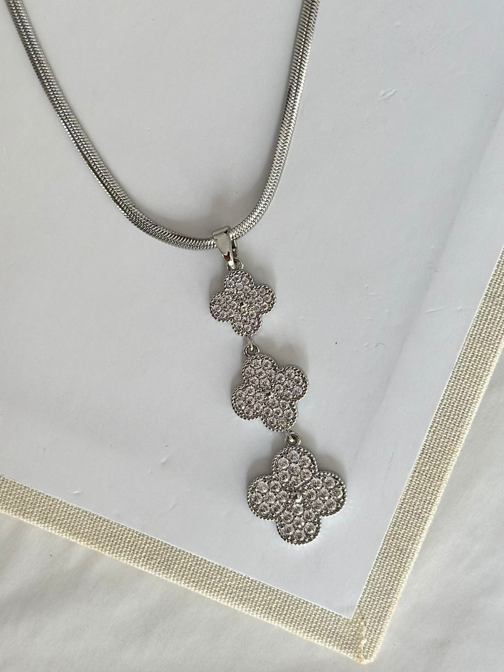 3 Lü Zirkon Yonca Kolye Gümüş Renk