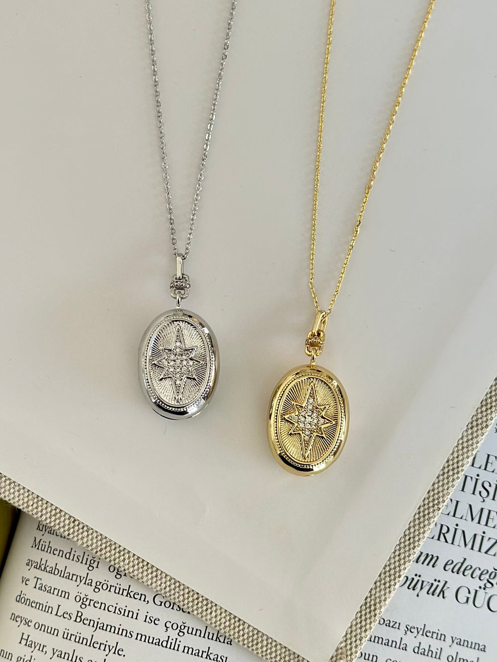 Açılır Kapaklı Yıldız Detay Oval Form Kolye