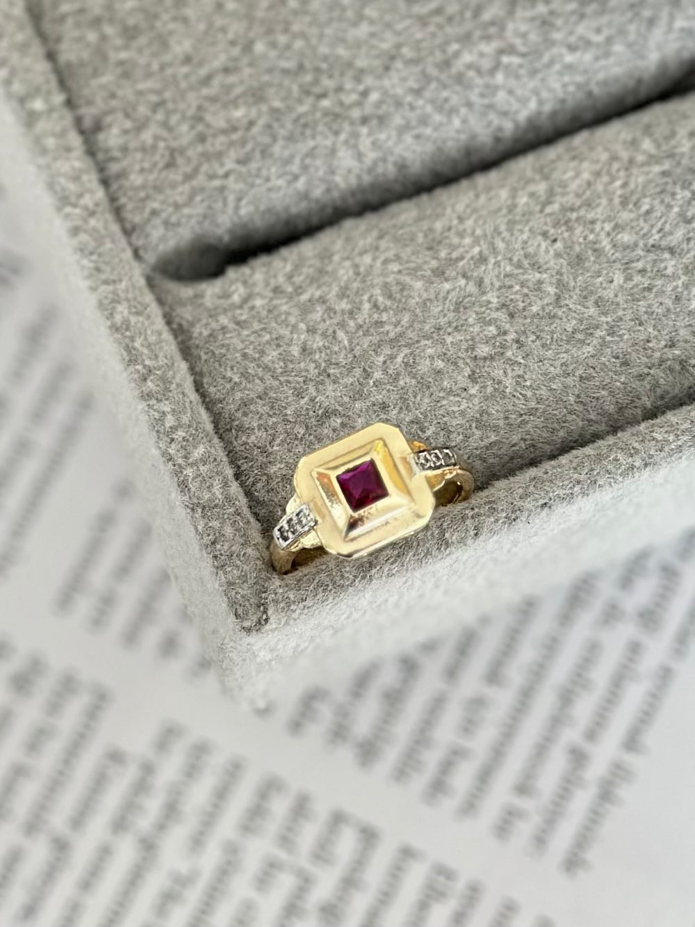 Bordo Detay Kare Model Gold Yüzük