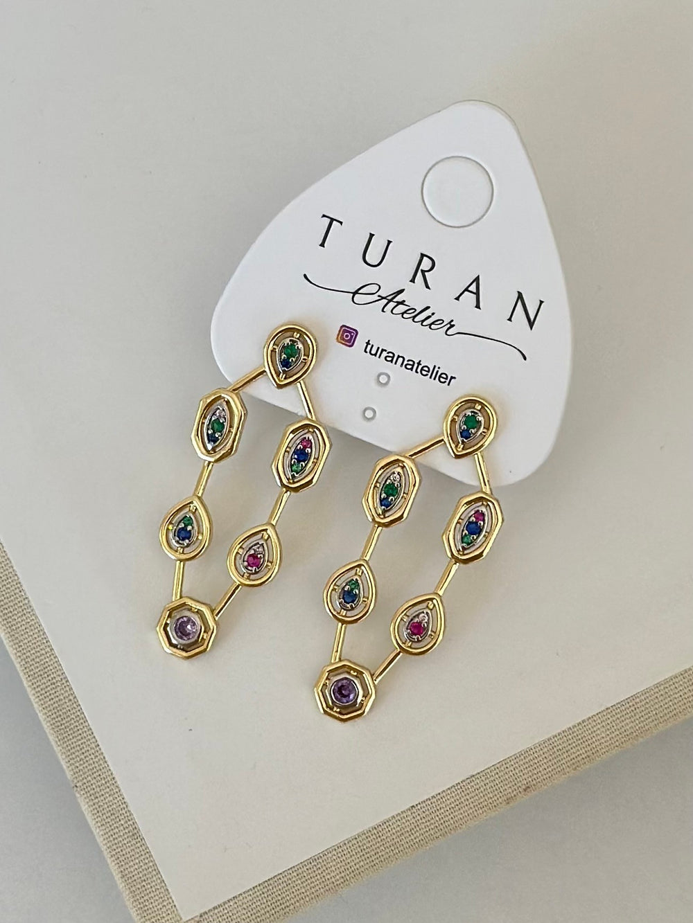 Çift Sıra Elips MG Tasarım Renkli Küpe