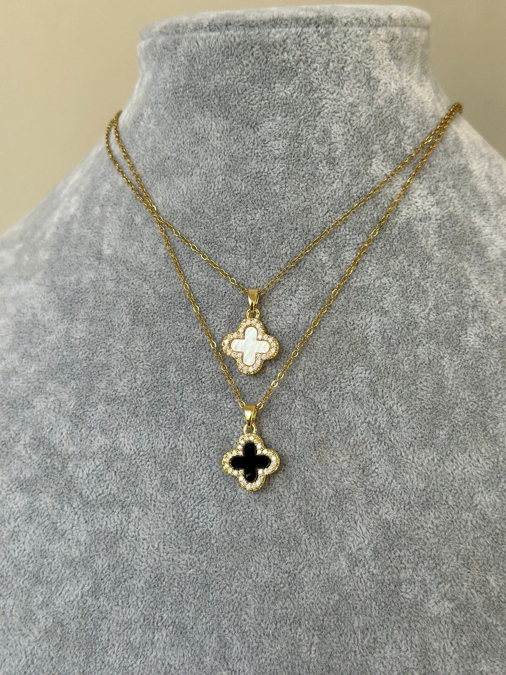 Çift Taraflı Taşlı Gold Yonca Kolye