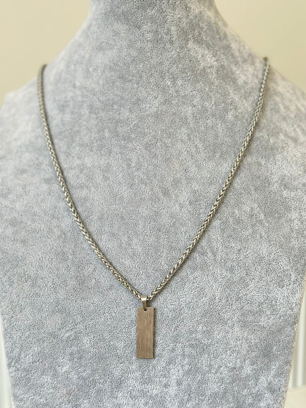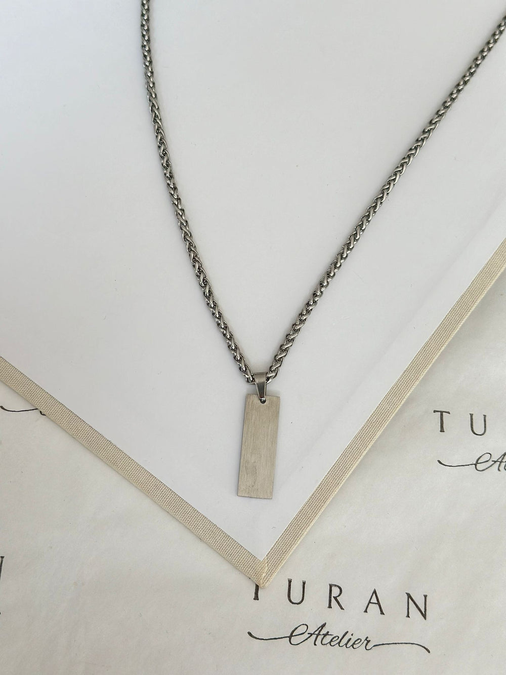 Dikdörtgen Plaka Çelik Zincir Kolye