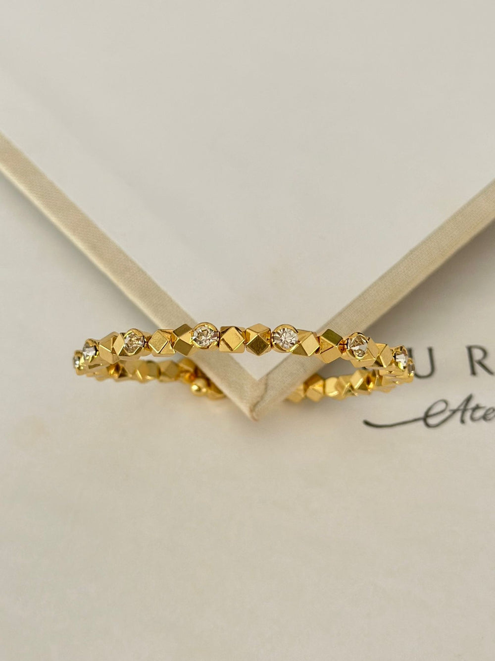 Esnek Küp Taşlı Bileklik / Gold