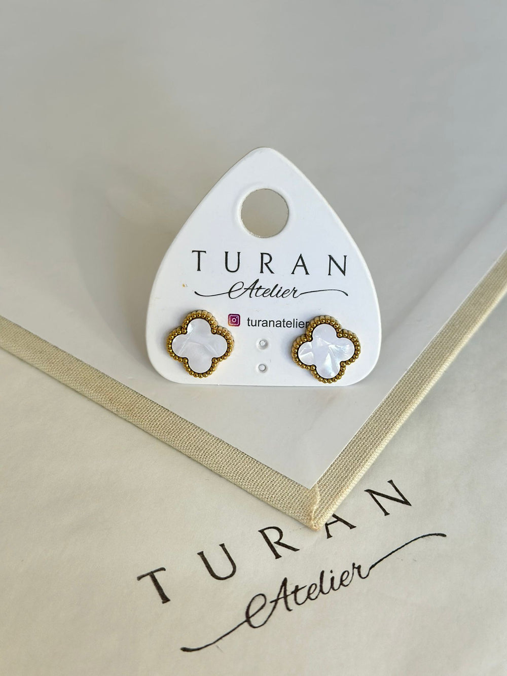 Gold Detay Beyaz Yonca Küpe