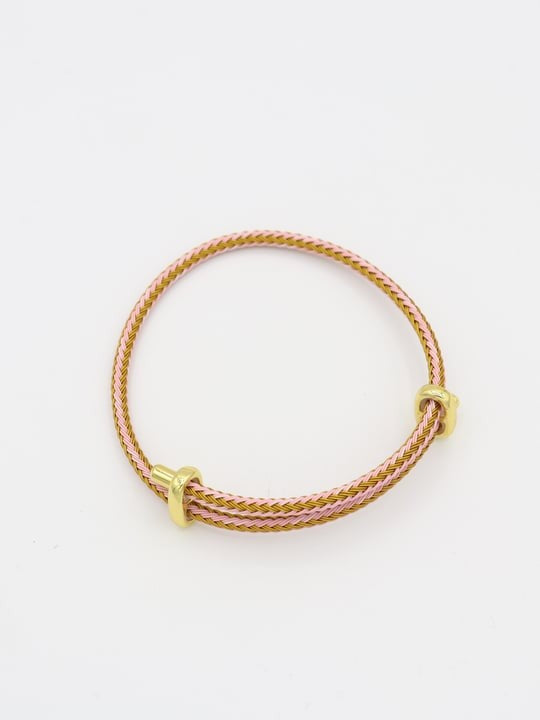 Gold Detay Kalın İp Bileklik / Pembe-Bej