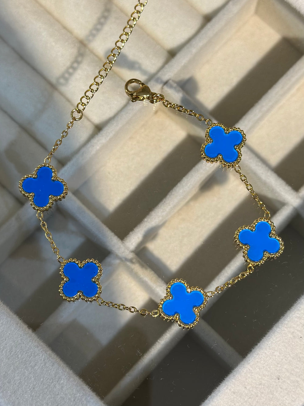 Gold Detay Mavi Yonca Bileklik