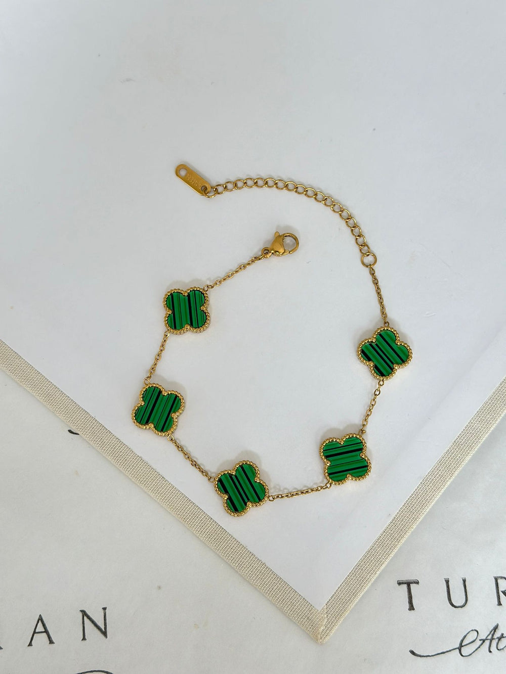 Gold Detay Yeşil Yonca Bileklik