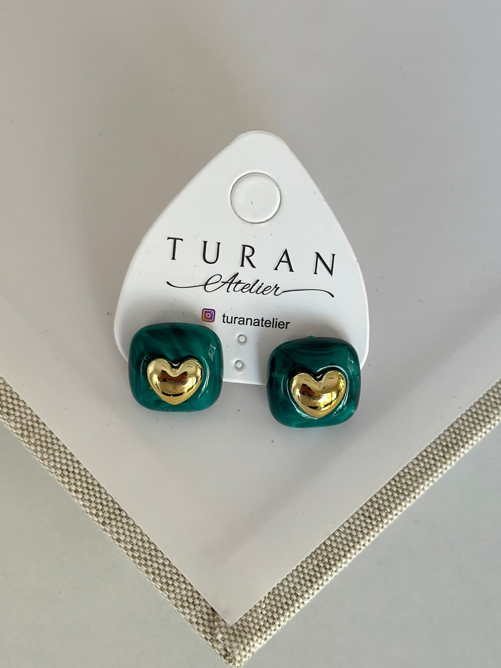 Gold Kalp Detay Yeşil Küpe