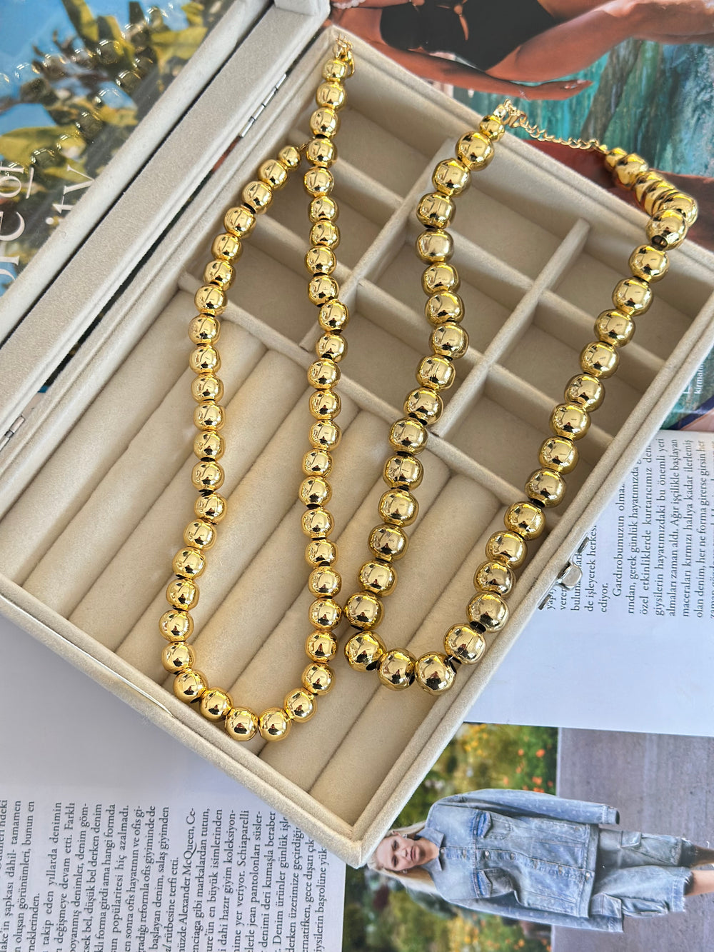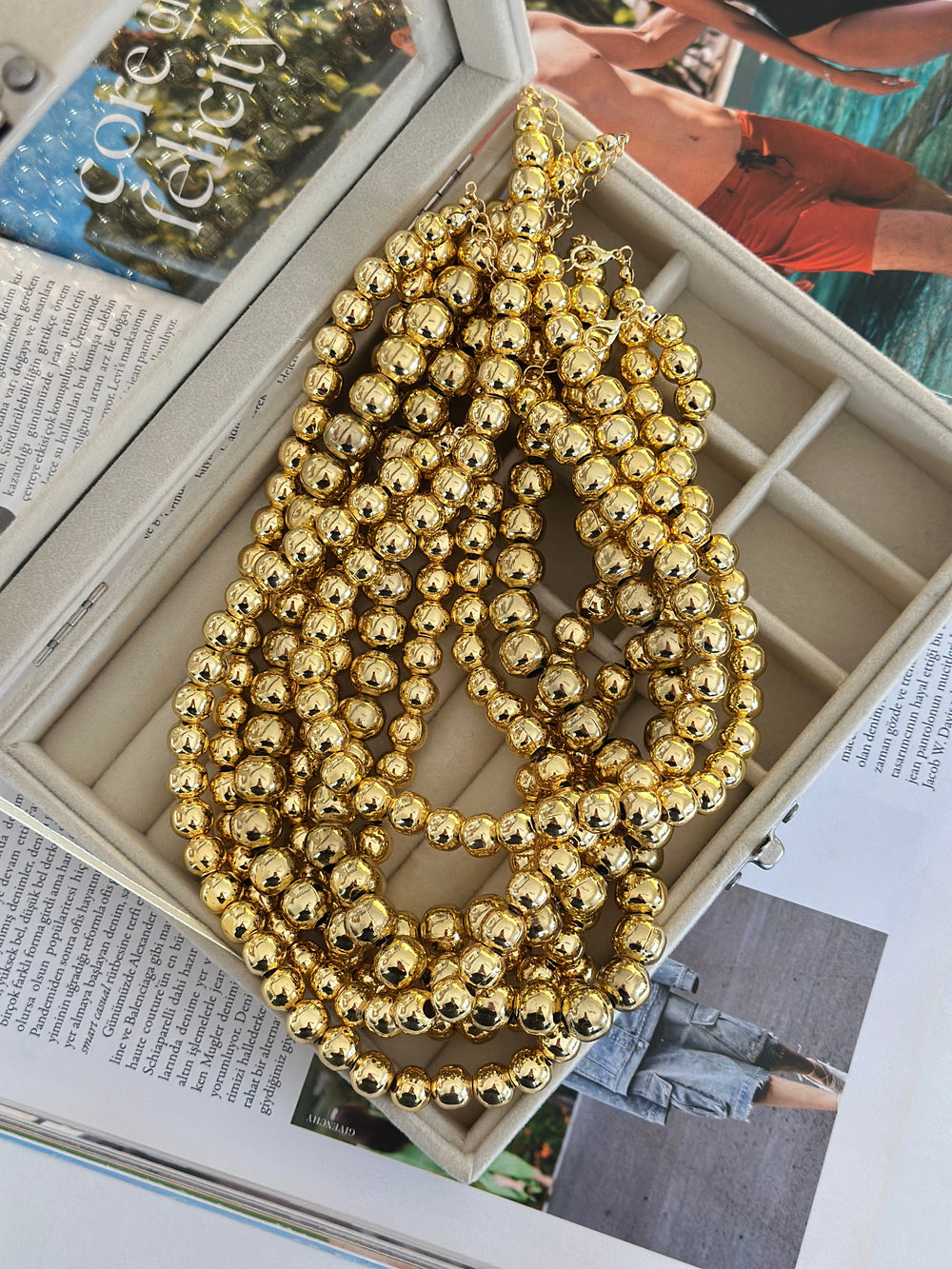 Gold Top Boncuk Kolye