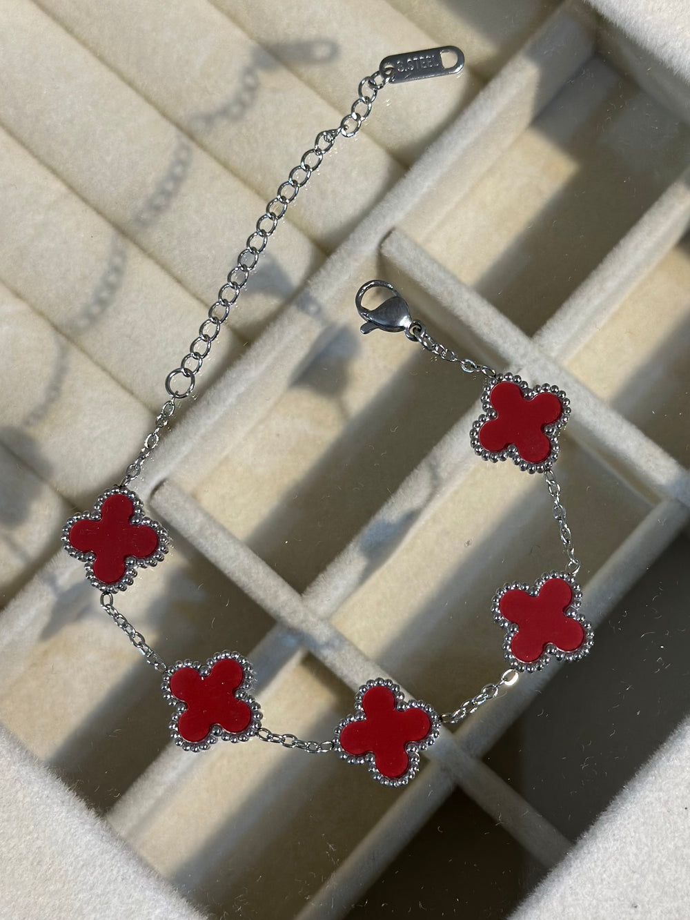 Gümüş Renk Detay Bordo Yonca Bileklik