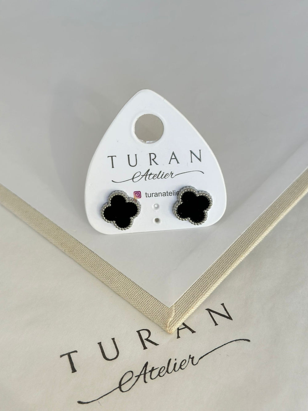 Gümüş Renk Siyah Yonca Küpe