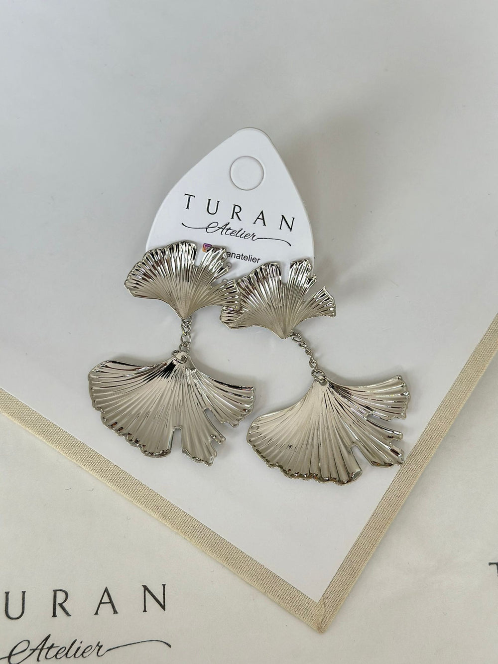 Gümüş Renk Yaprak Plaka Sallantılı Küpe