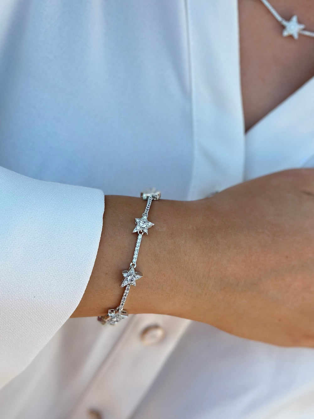 Gümüş Renk Zirkon Star Bileklik