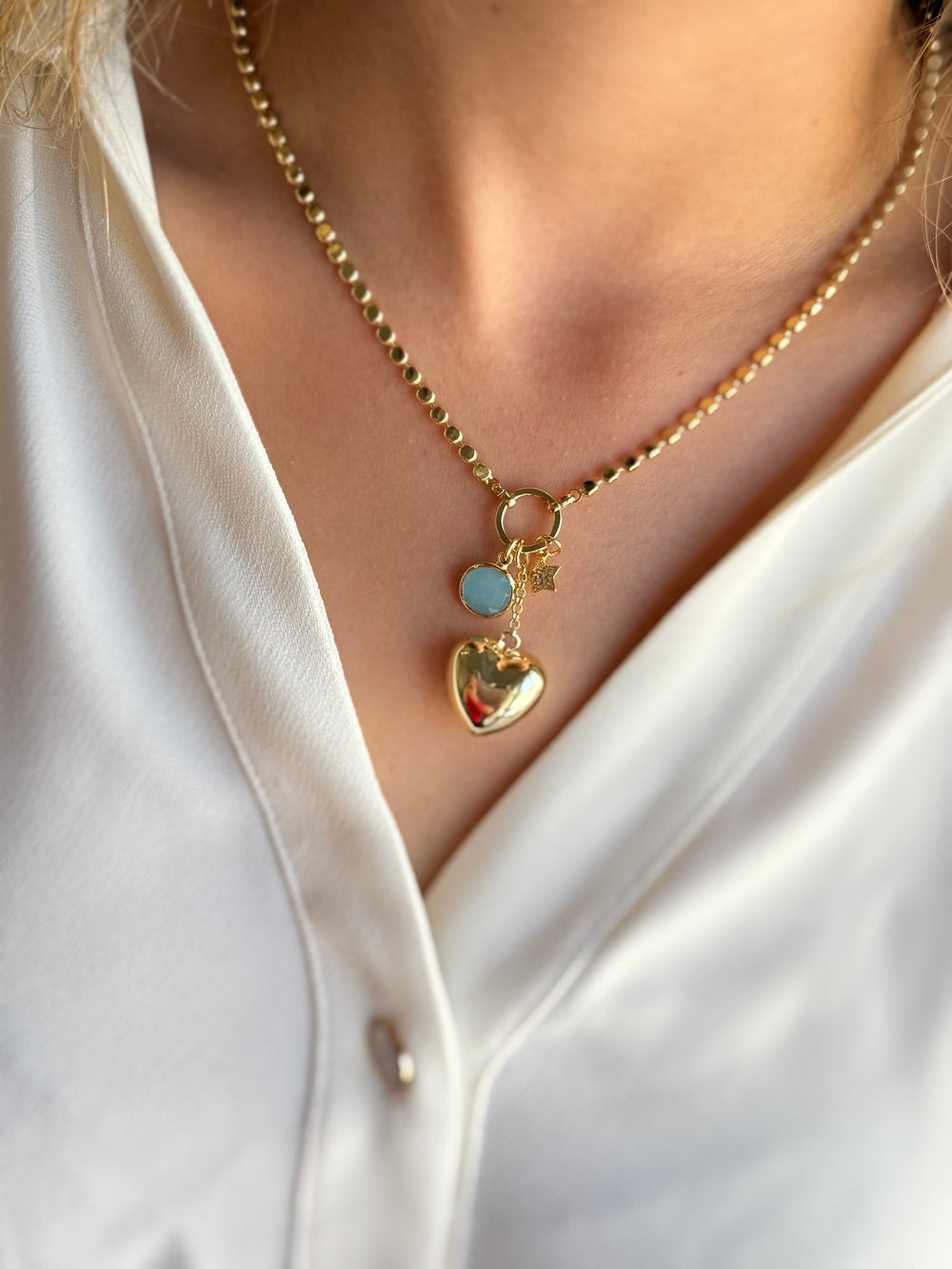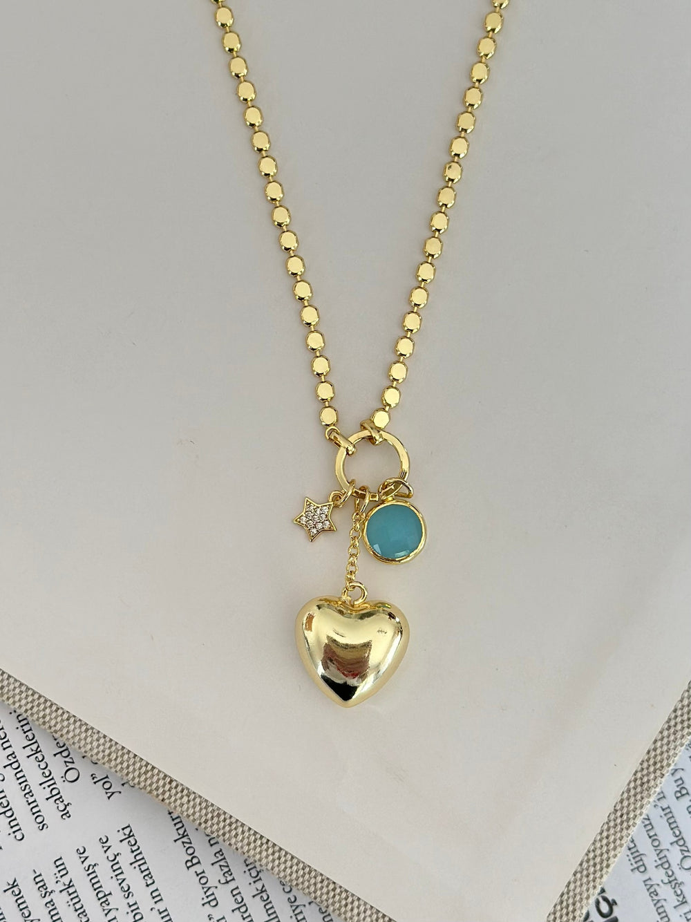 Kalp ve Yıldız Uçlu 14K Renk Pul Zincir Ezme Kolye