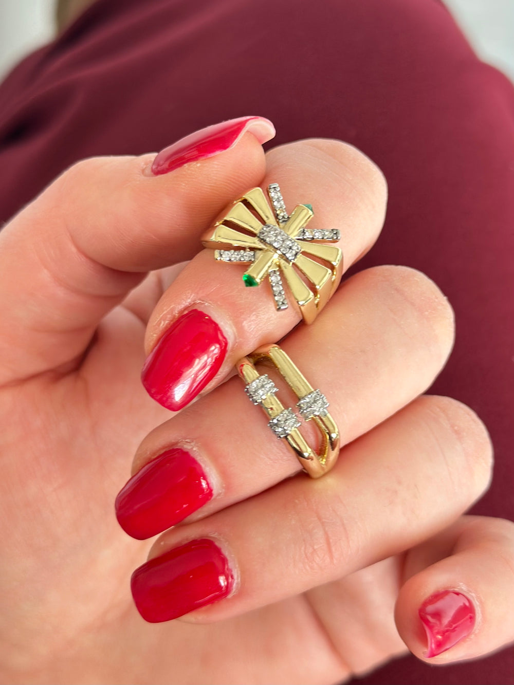 Kare Model Mini Taşlı Çift Sıra Özel Tasarım Yüzük
