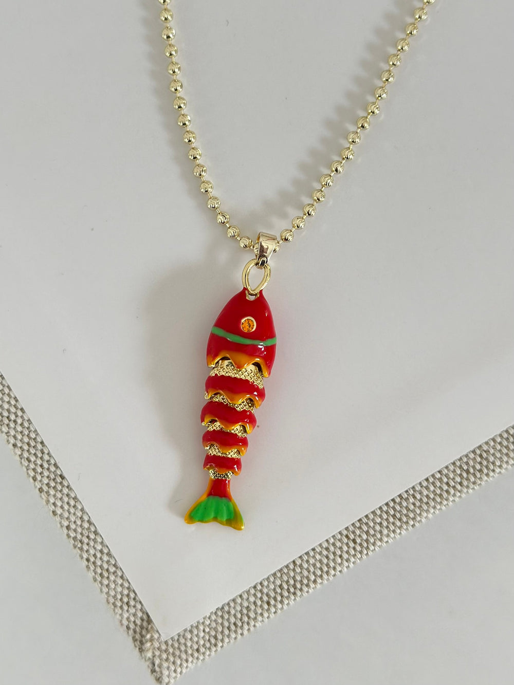 Kırmızı Gold Topçuk Zincir Balık Kolye