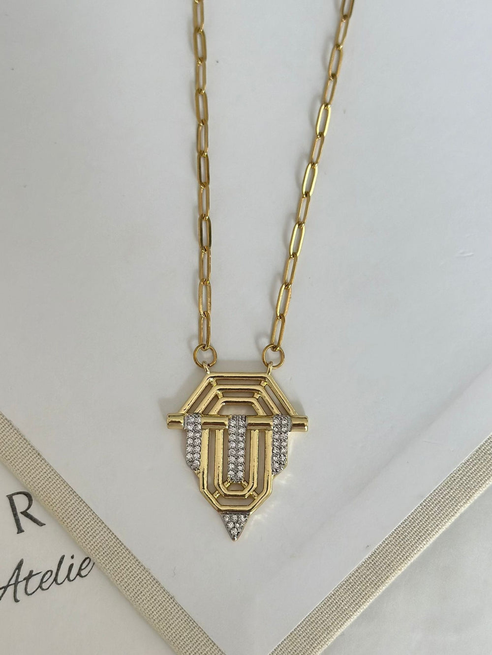 Leyla Gri Taş Detay Üçgen Model Kolye| 5