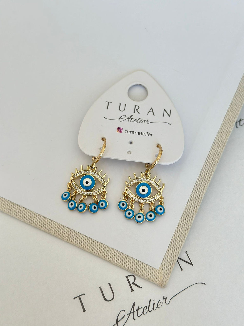 Mavi Detay Sallantılı Göz Küpe