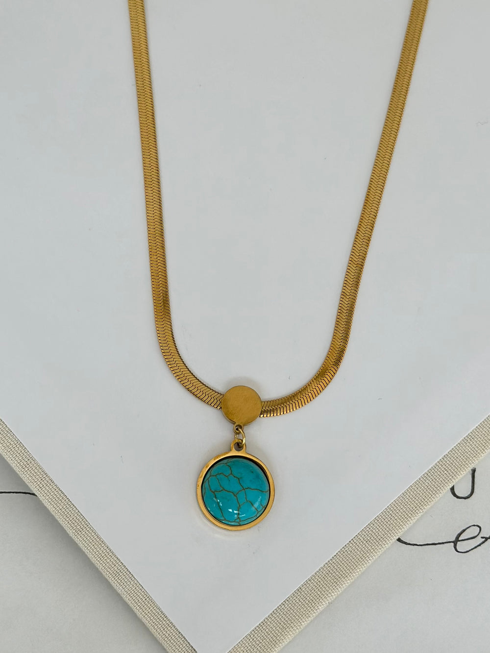 Mavi Taş Çelik Gold Kolye