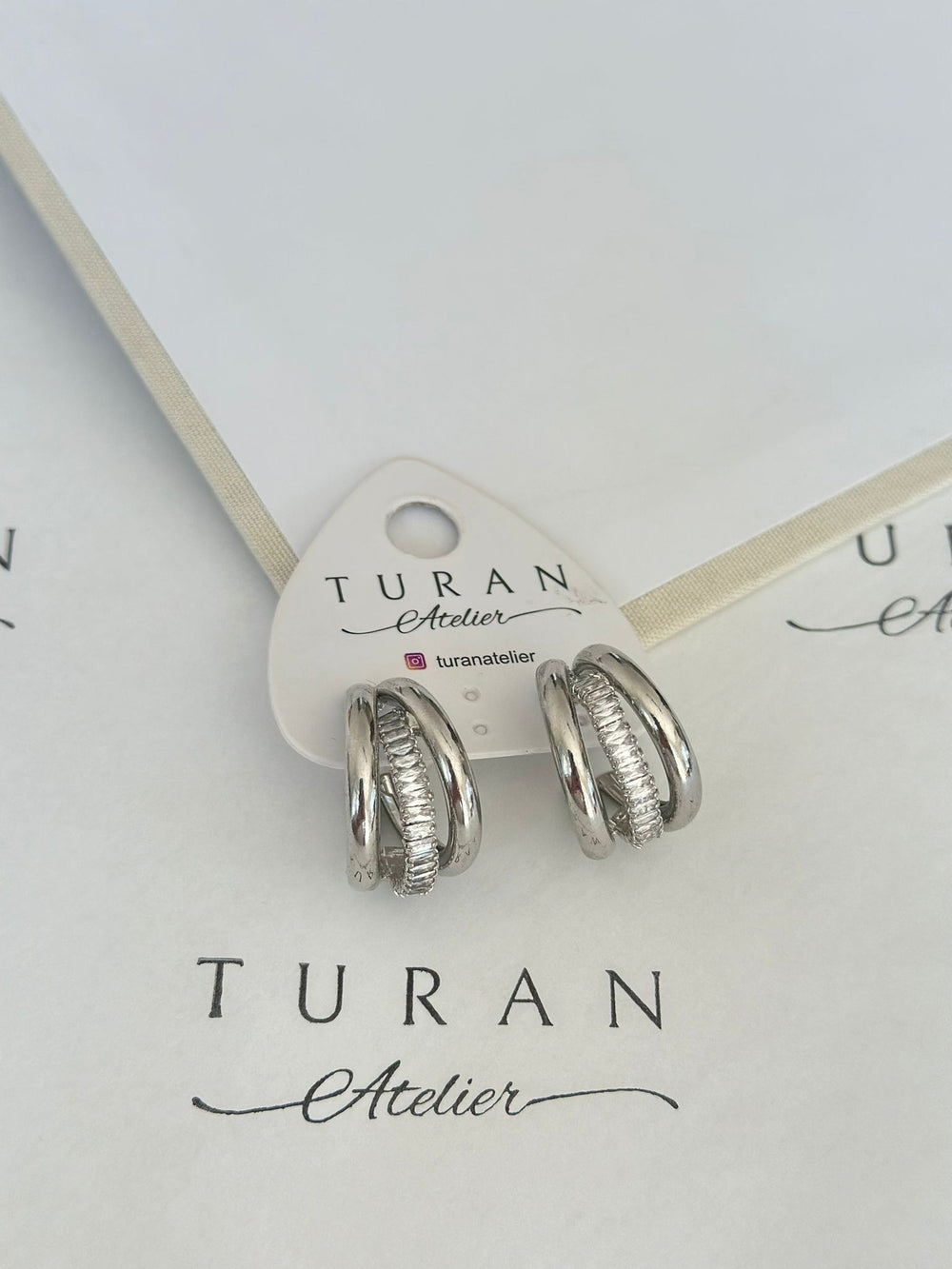 Ortası taşlı kaplama gümüş renk halka küpe