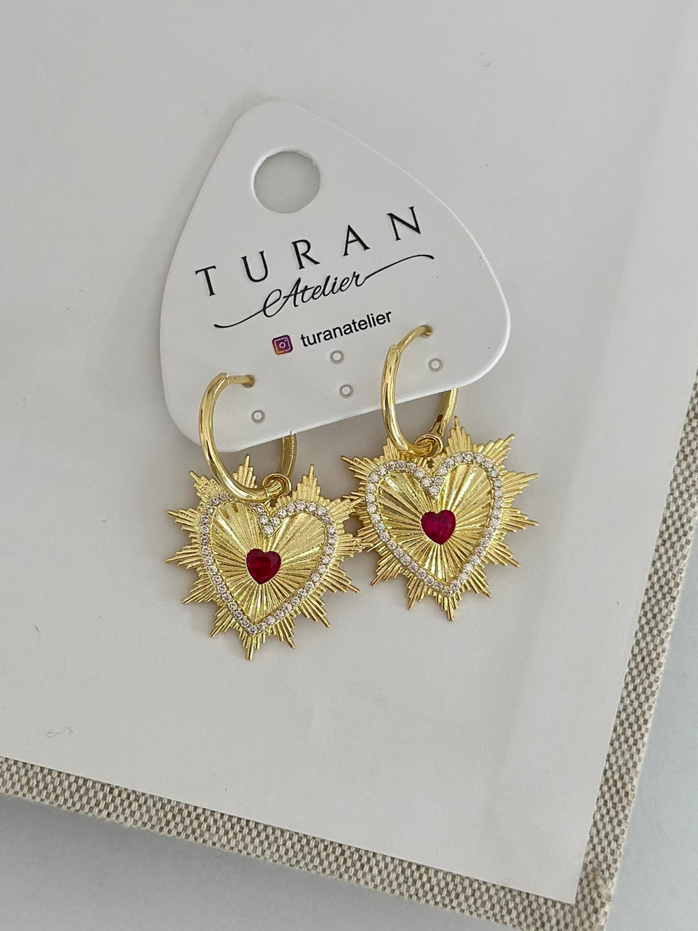 Pembe Kalp Detaylı Çizgi Plaka Küpe