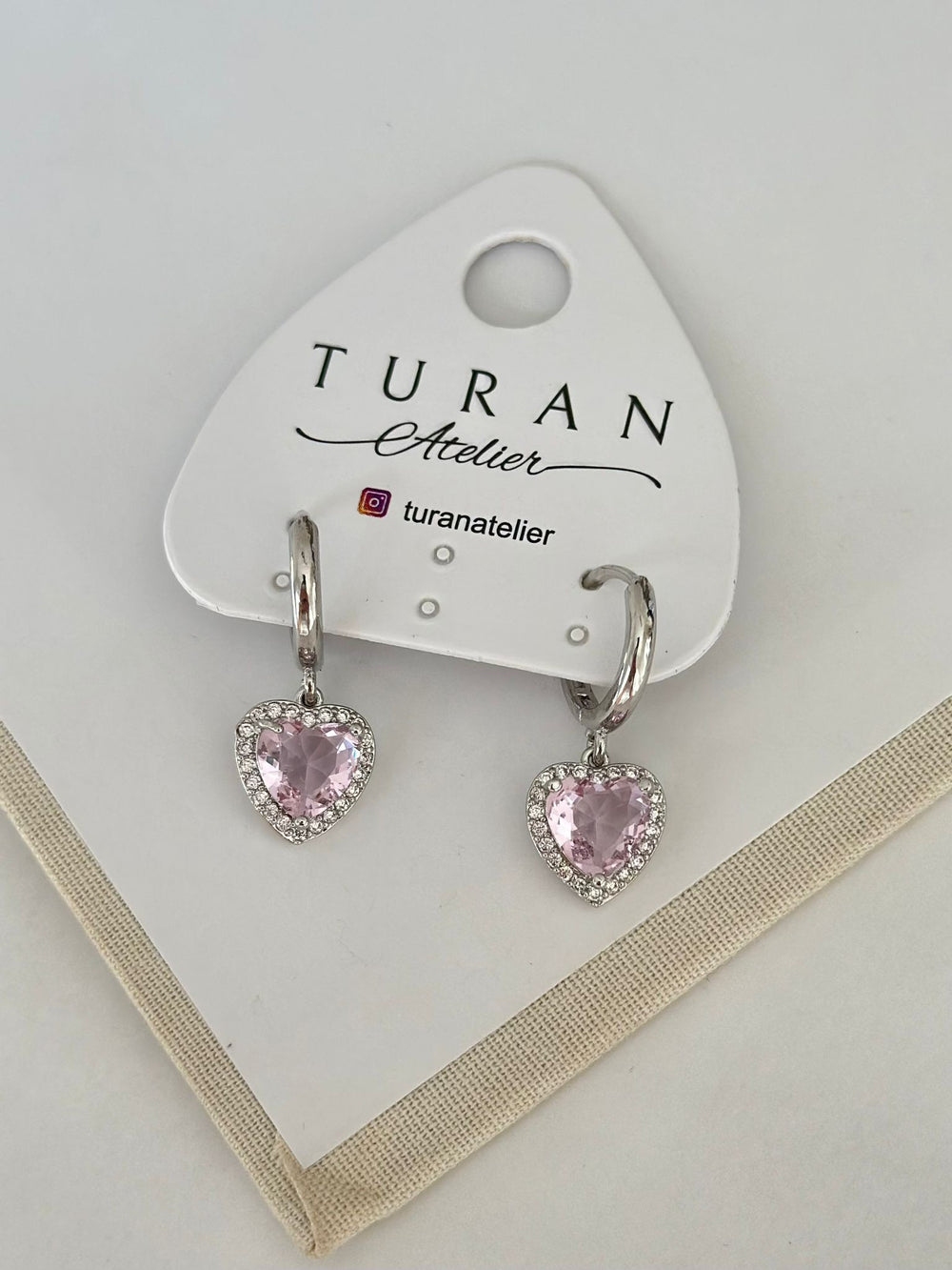 Pembe Kalp Gümüş Renk Marka Küpe