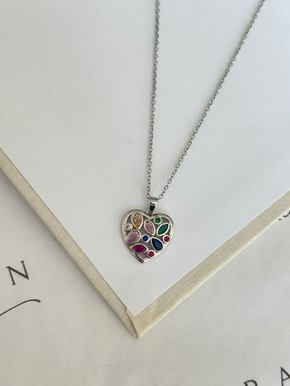 Renkli Detay Sılver Kalp Kolye
