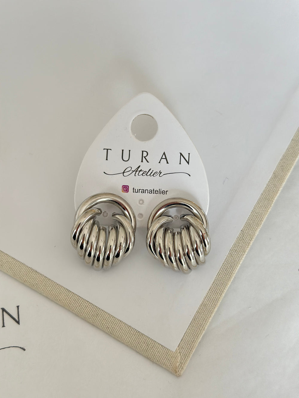 Şerit Düğüm Oval Gümüş Renk Küpe