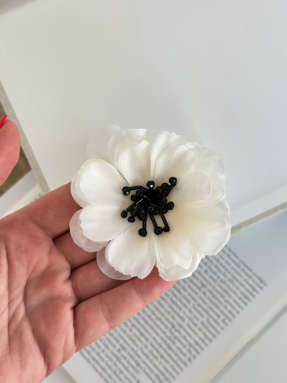 Siyah Boncuklu Beyaz Kumaş Küpe
