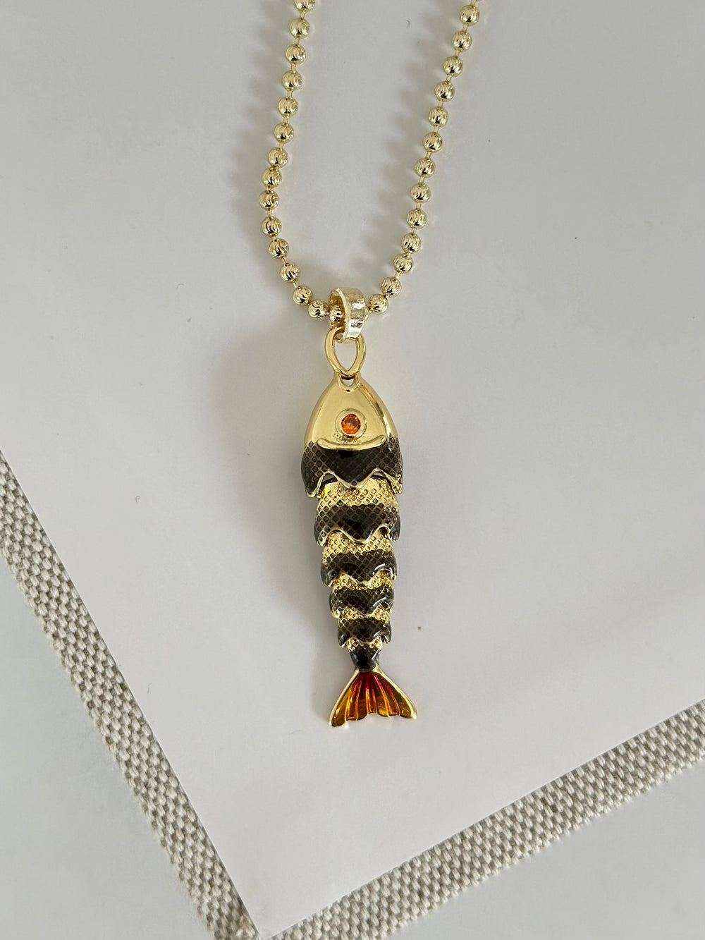 Siyah Gold Topçuk Zincir Balık Kolye