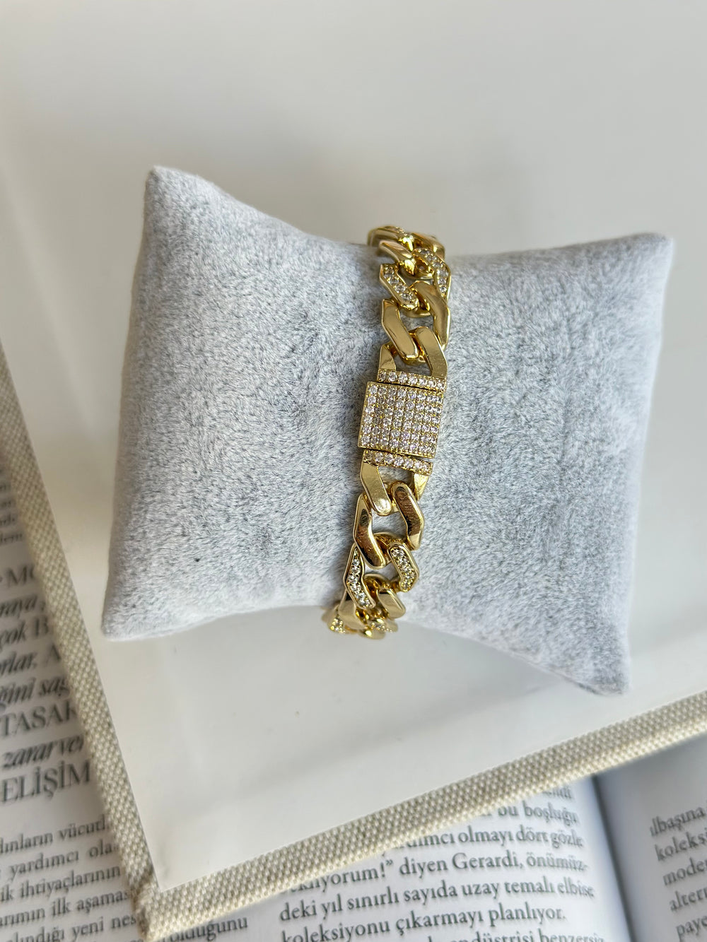Taşlı Altın Kilit Taşlı Gurmet Bileklik (14K Renk)