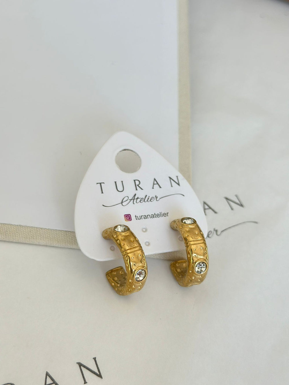 Taşlı Darbeli Gold Renk Çelik Küpe