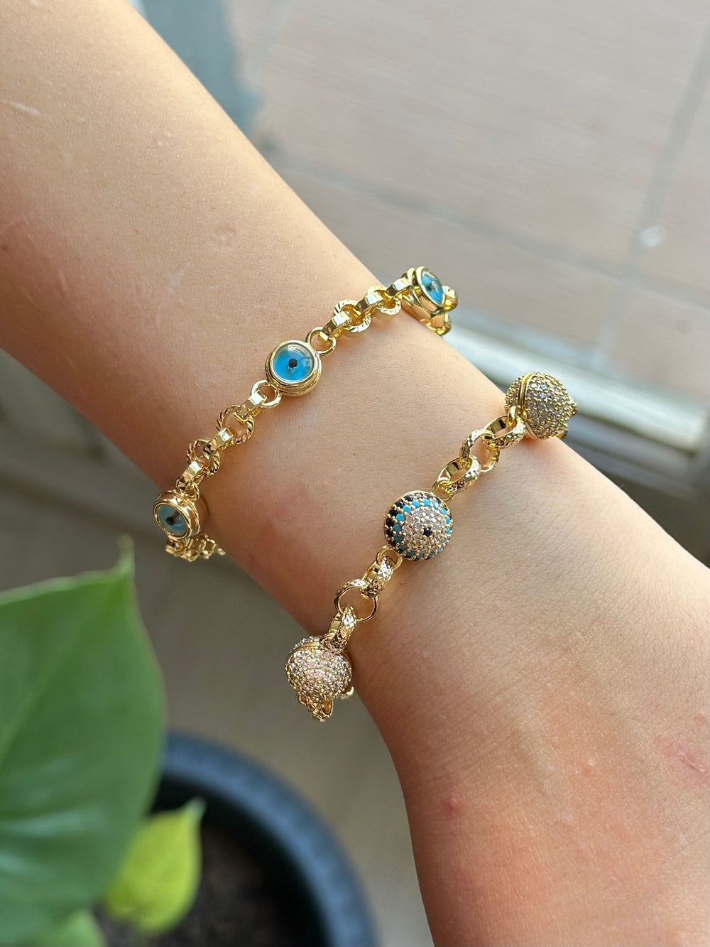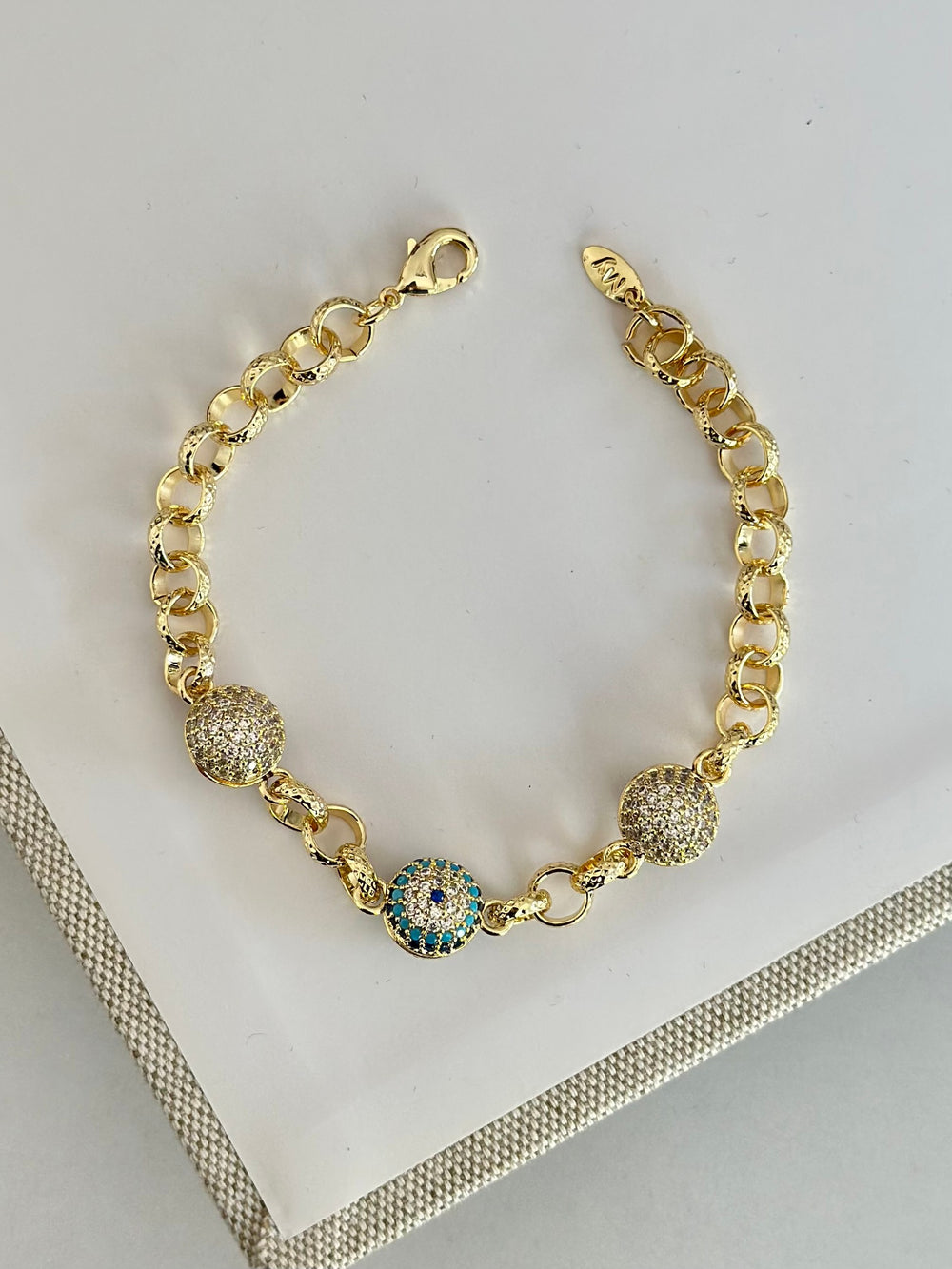 Taşlı Göz Nazar Altın Model Bileklik