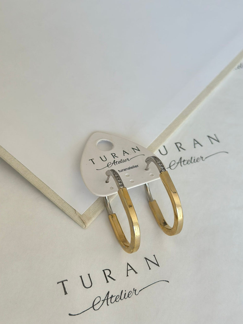 Taşlı İki Renk Büyük Küpe