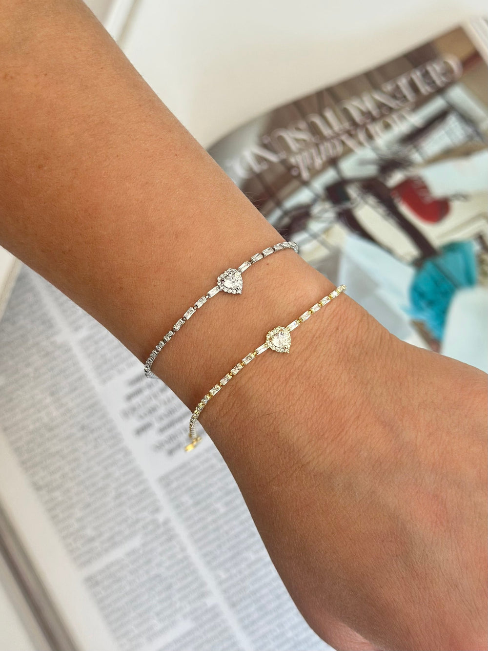 Taşlı Kalpli İnce Su Yolu Bileklik