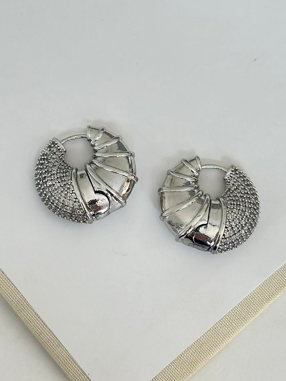 Taşlı Salyangoz Bombe Küpe / Gümüş Renk