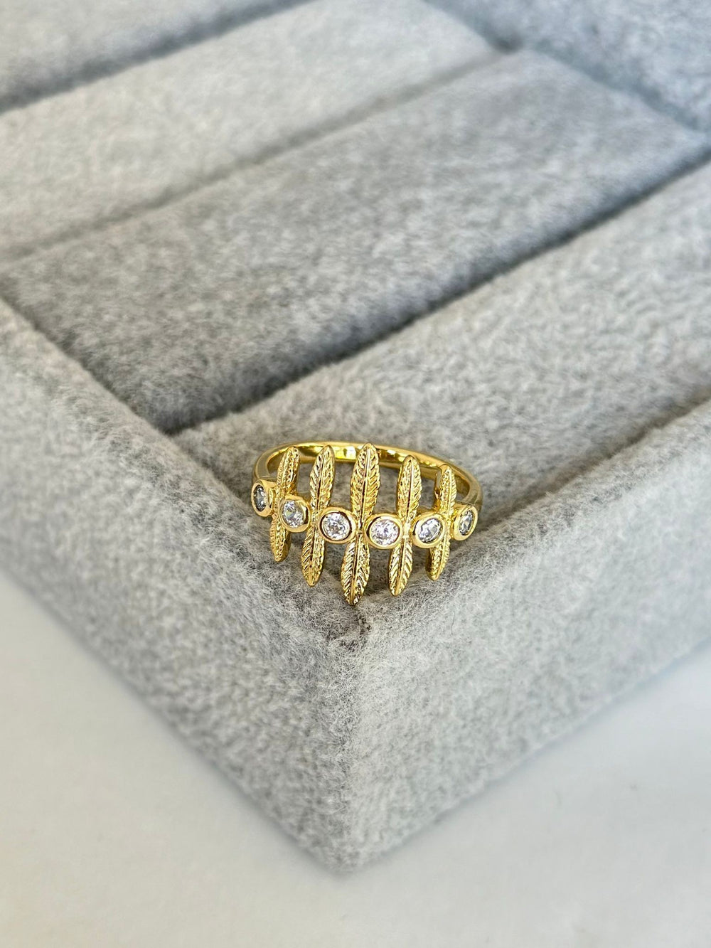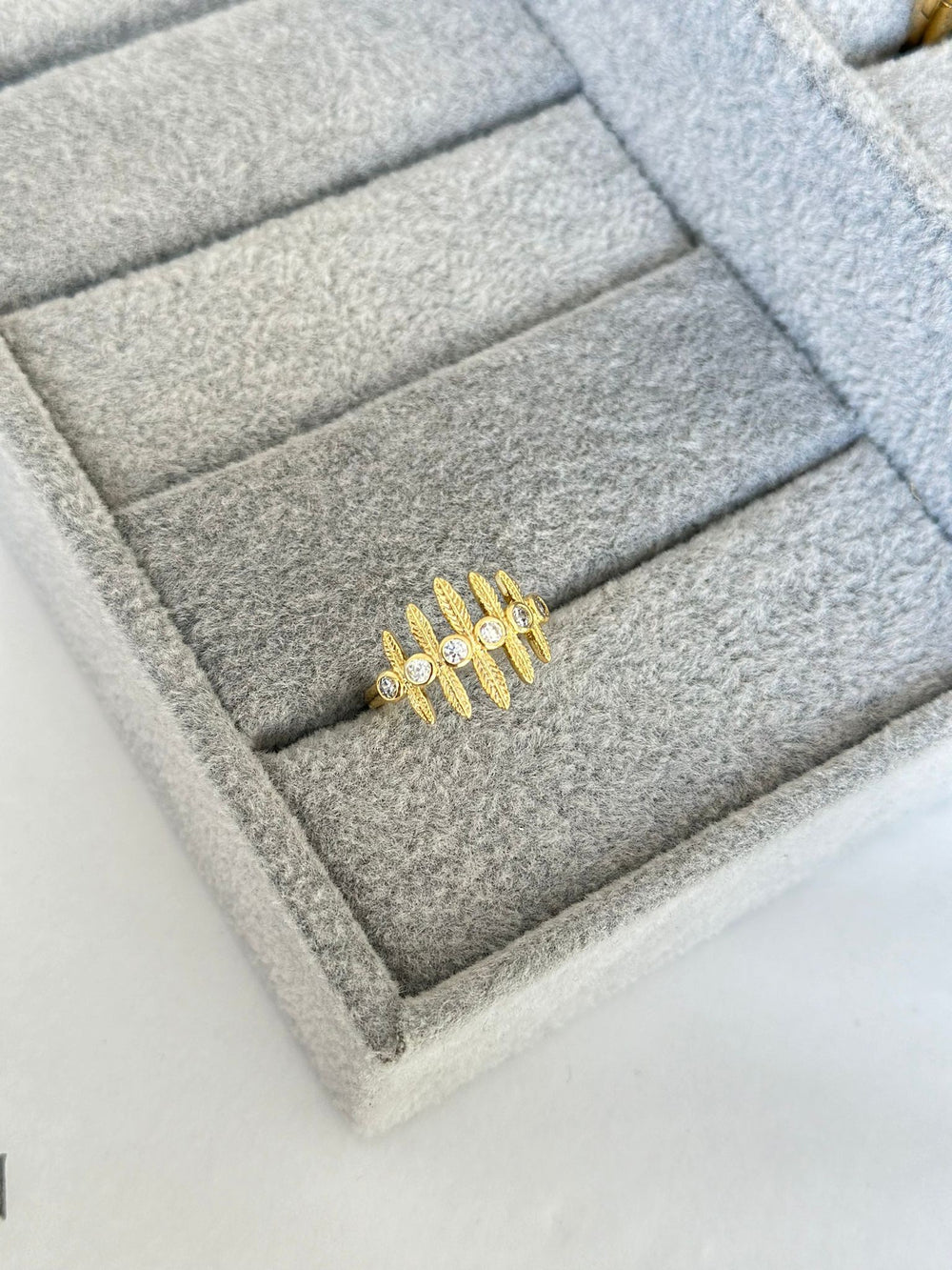 Taşlı Tüy Yüzük ( 14 K Renk )