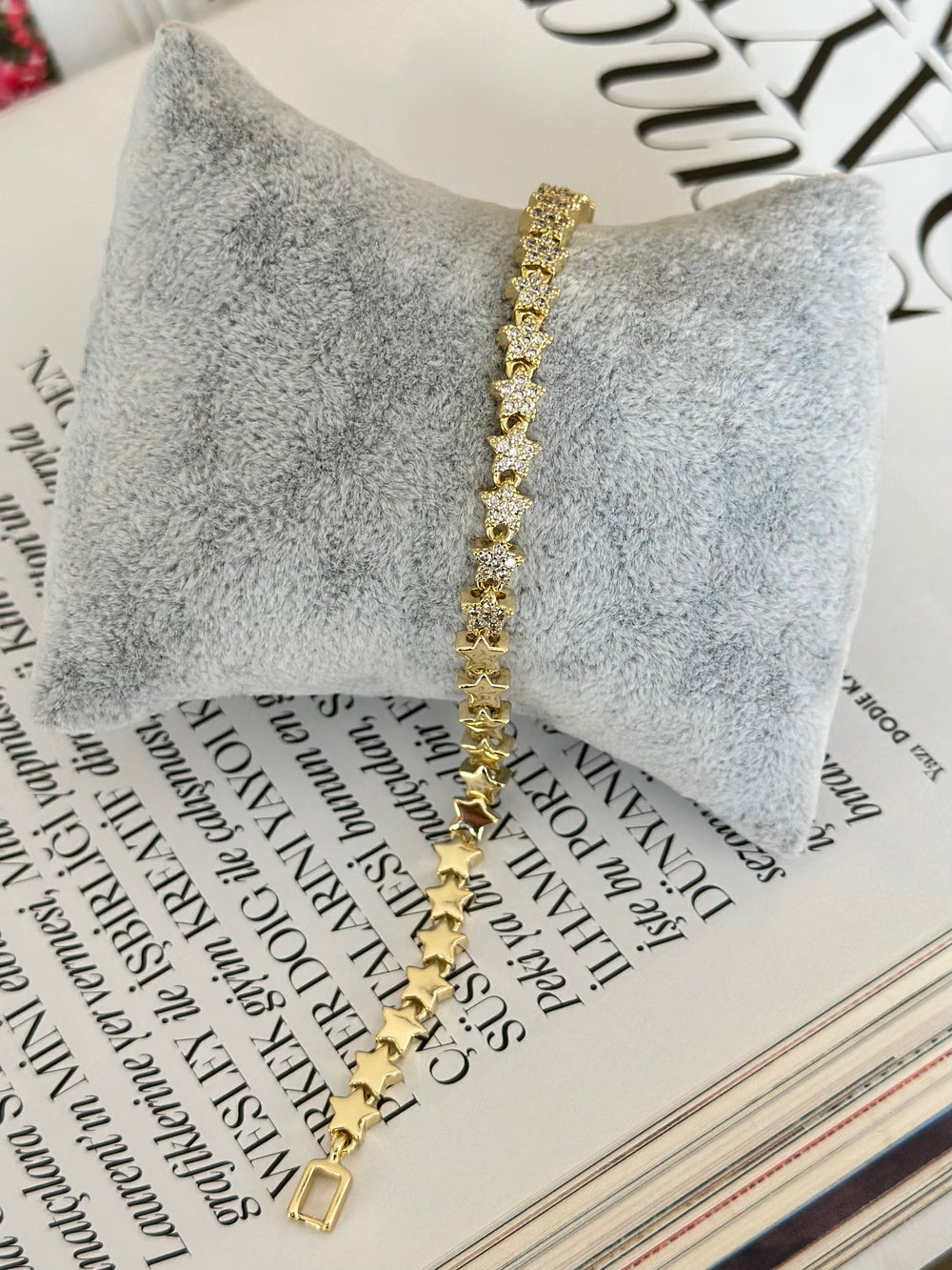 Yarım Taşlı Gold Yıldız Bileklik