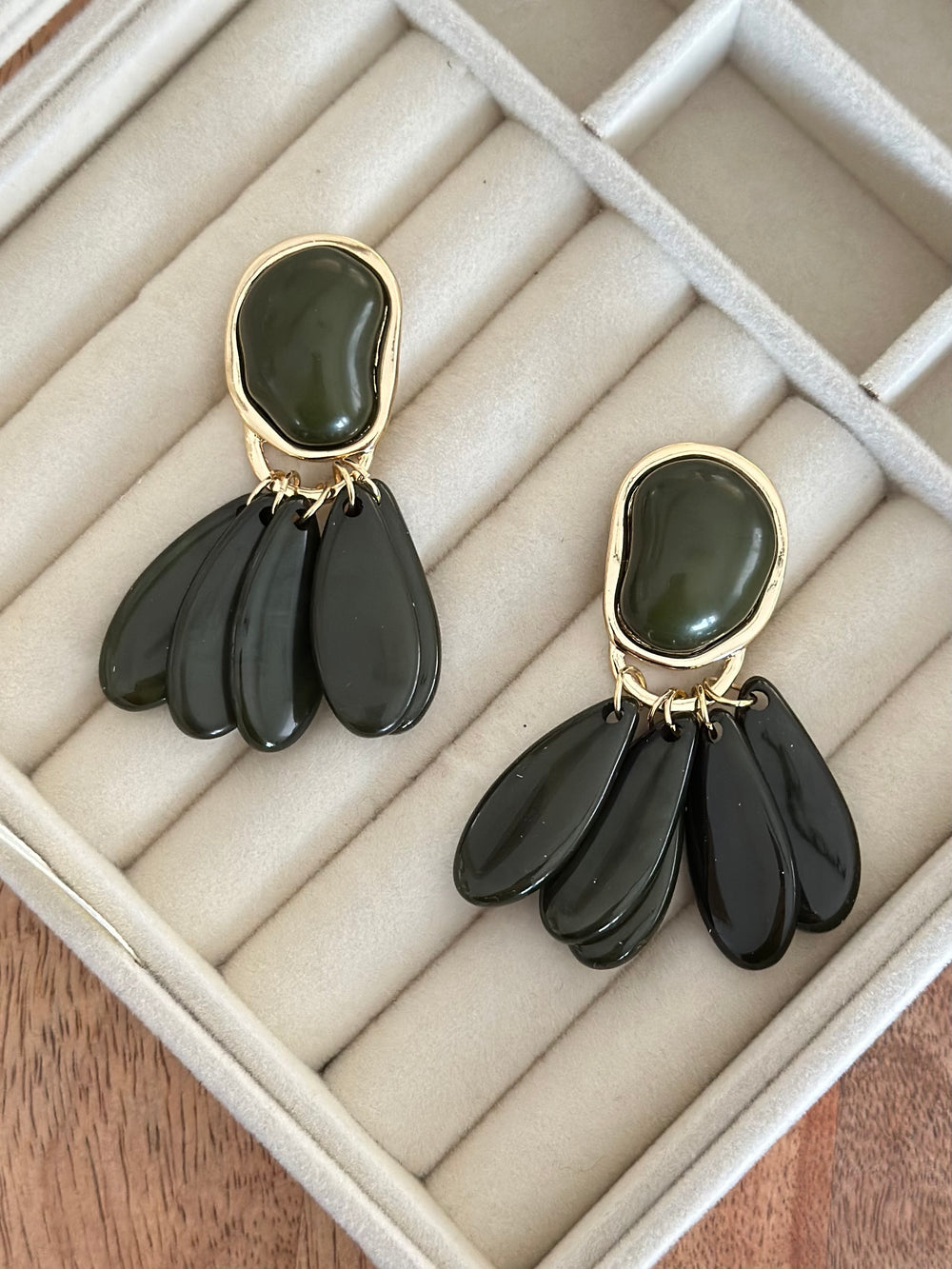 Yeşil Sallantılı Tasarım Kemik Küpe