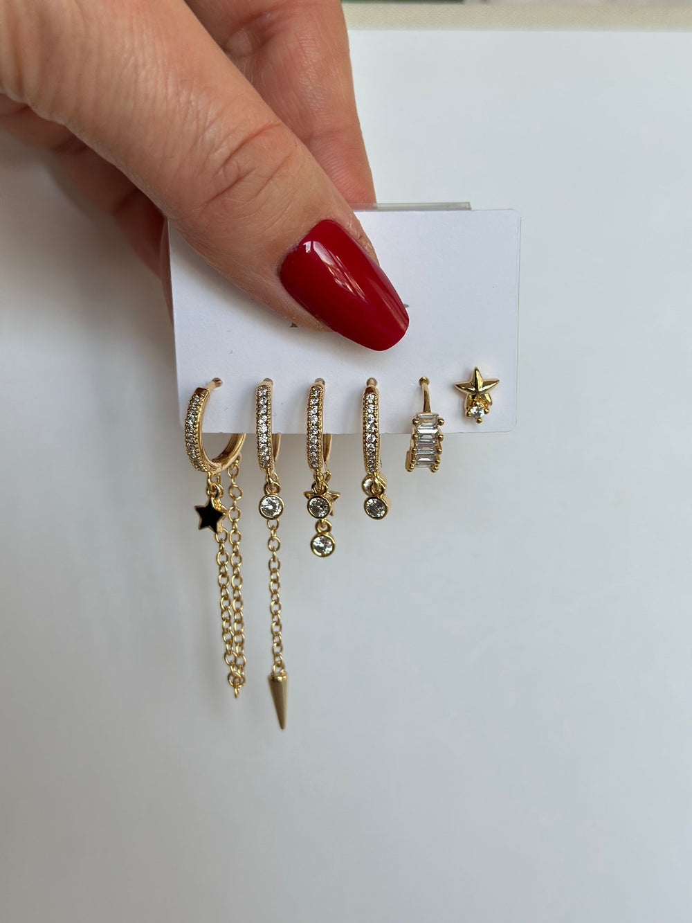 Yıldız Detay 6'lı Gold Kombin Küpe