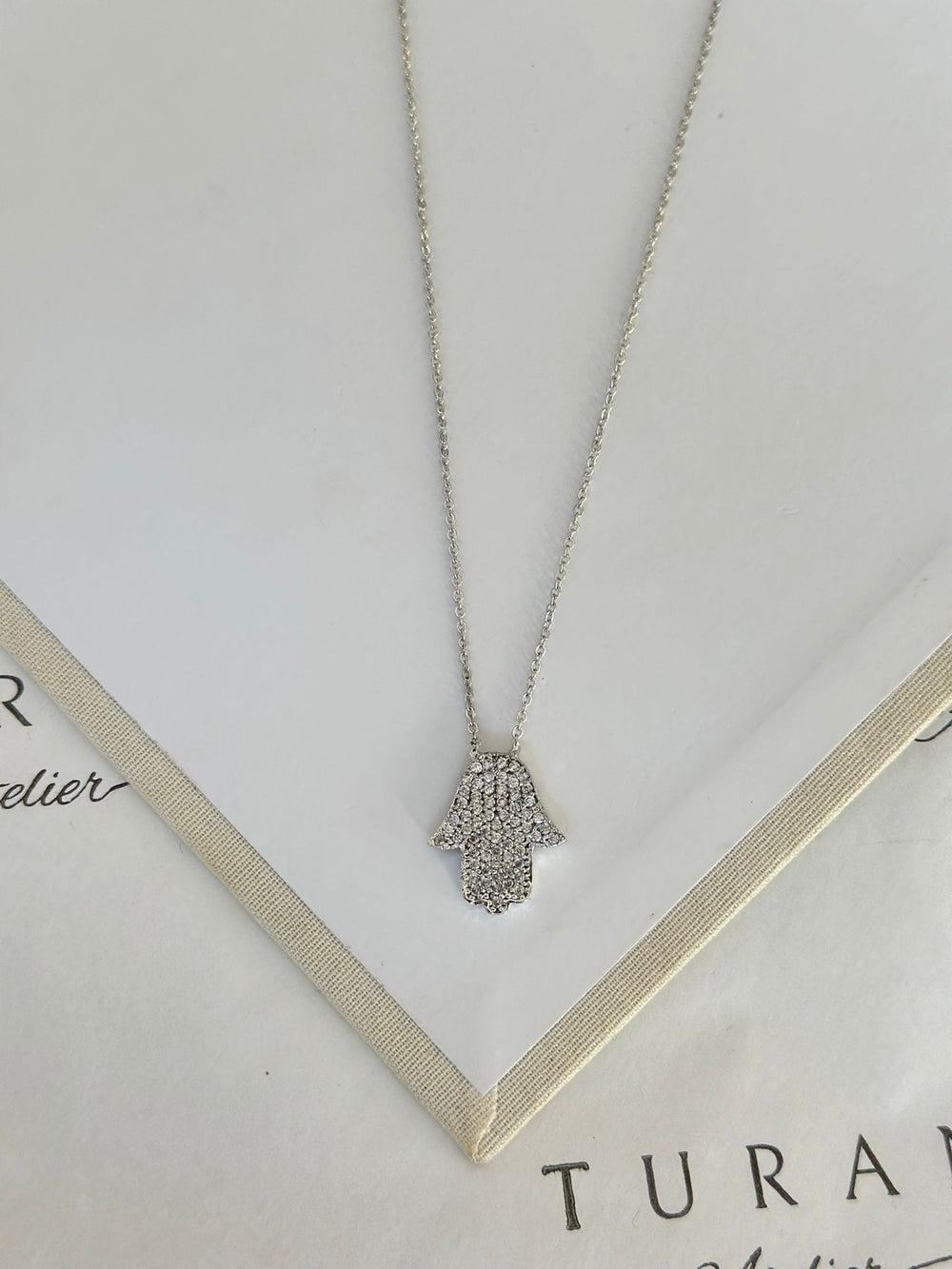 Zirkon fatma eli kolye gold renk